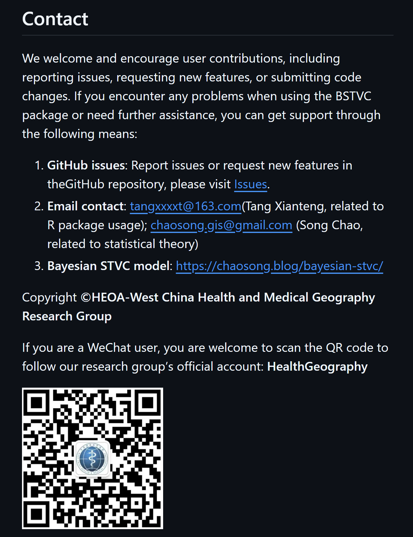 More information on the Bayesian STVC model homepage (English) and Baidu Baike (Chinese). Welcome to utilize our Bayesian STVC series models for your own research. Feel free to contact us (chaosong.gis@gmail.com).